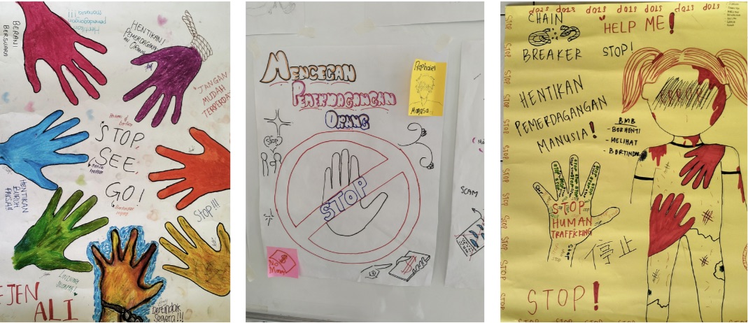 As the activities went on, the shy 12- and 13-year-olds began opening up. “I learned not to simply accept job offers, but to think carefully first,” said 13-year-old Yvangelene, proudly holding up her group’s poster. Another participant from Keningau nodded, “We could actually identify the tricks traffickers use to trap people.”